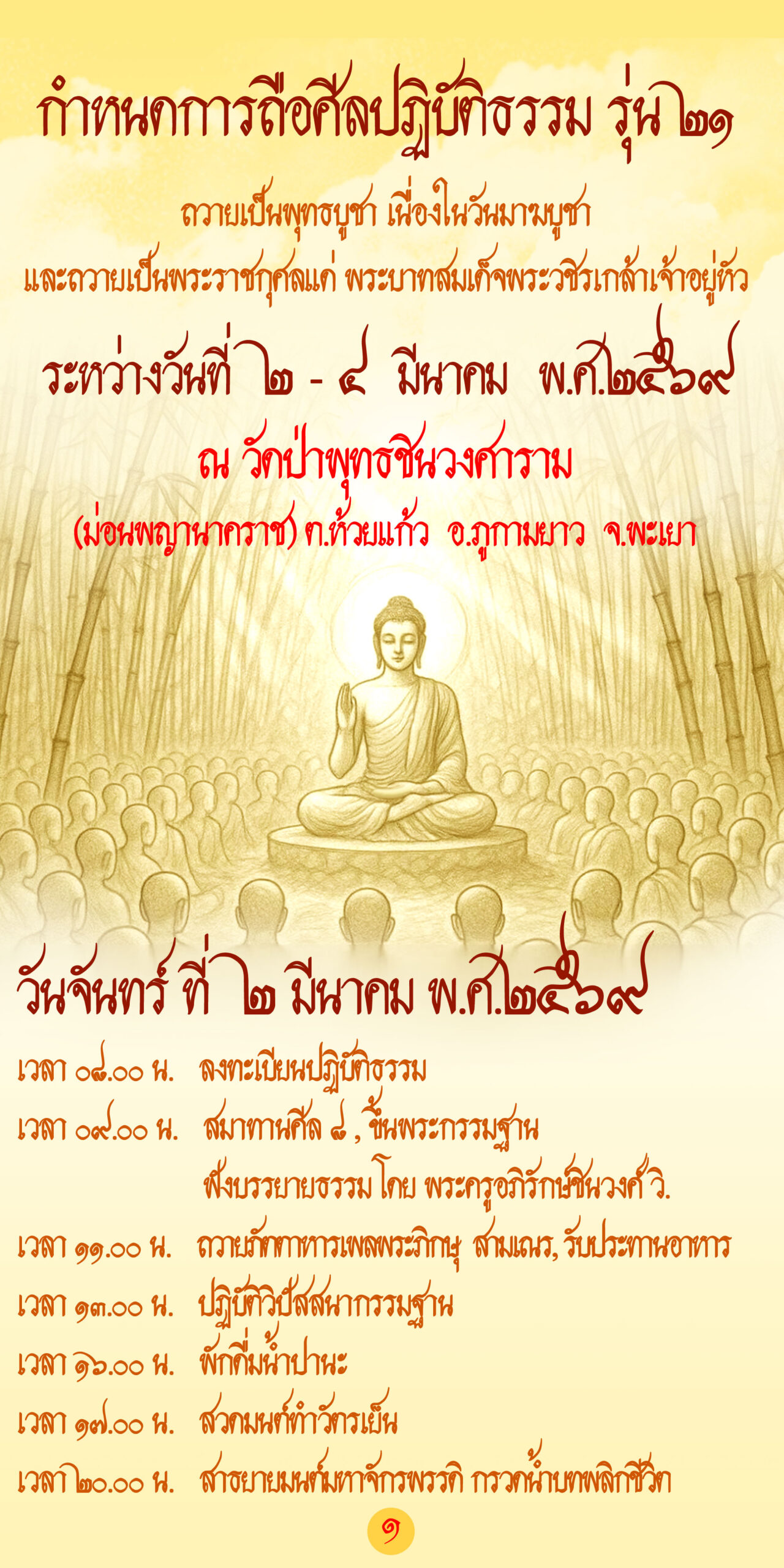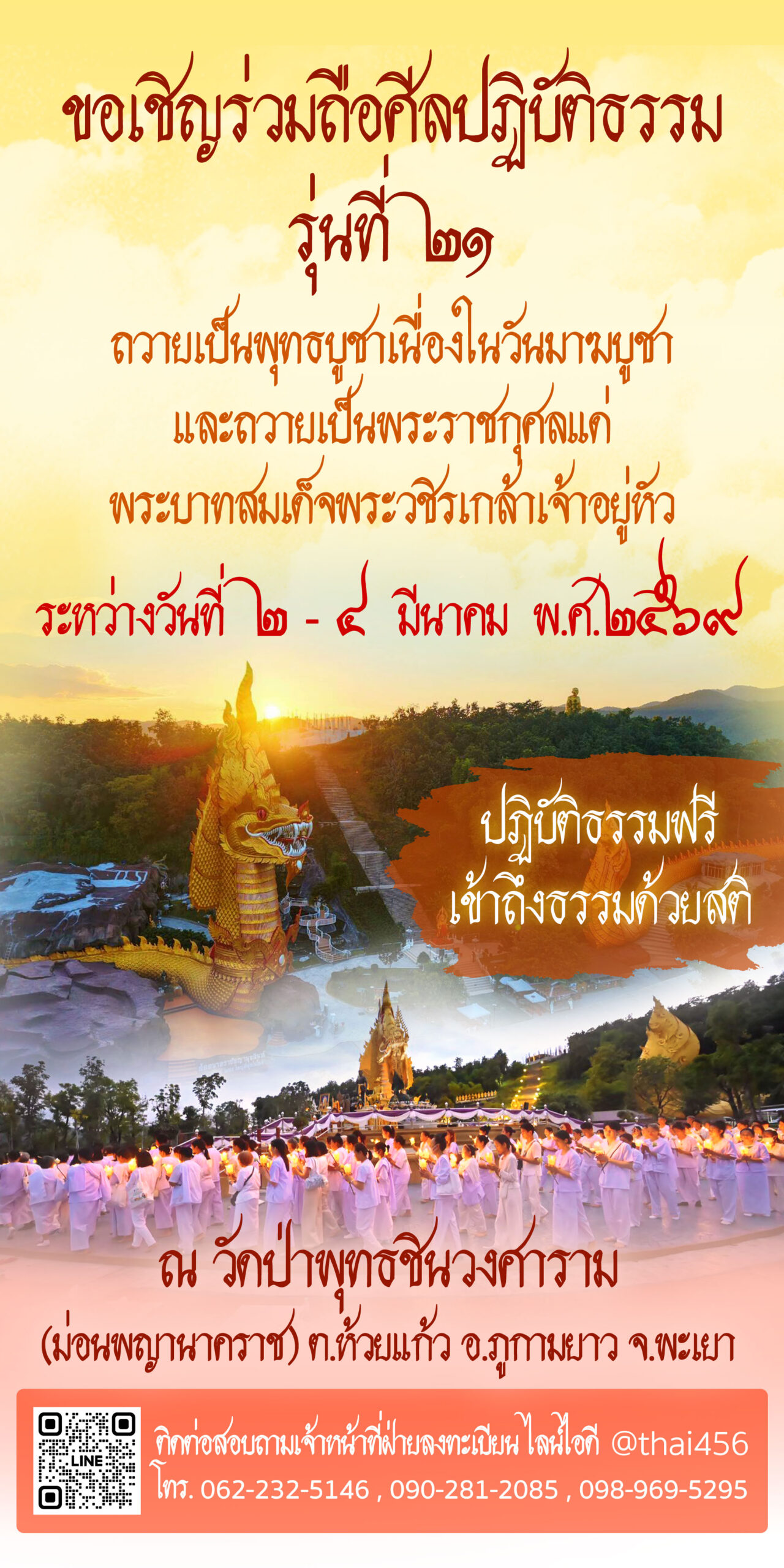 ขอเชิญร่วมถือศีลปฏิบัติธรรม รุ่นที่ 21